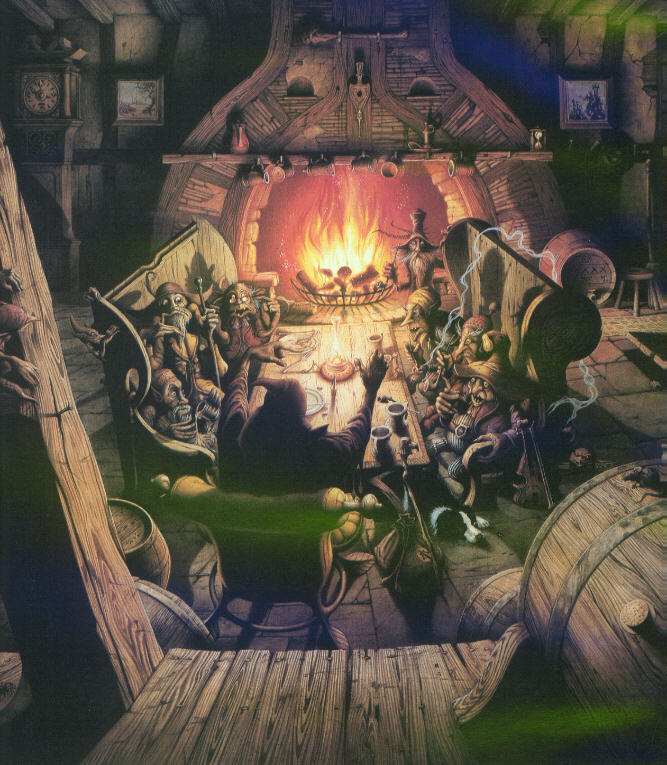 L'assemblée, de plus en plus nombreuse à écouter la formidable histoire, resta pétrifiée... Plein de petites gens venaient remplir la salle principale de la taverne à la nouvelle du récit, s'aglutinant les uns contre les autres, chassant le moindre mot qu'ils pourraient raconter plus tard fièrement aux autres.