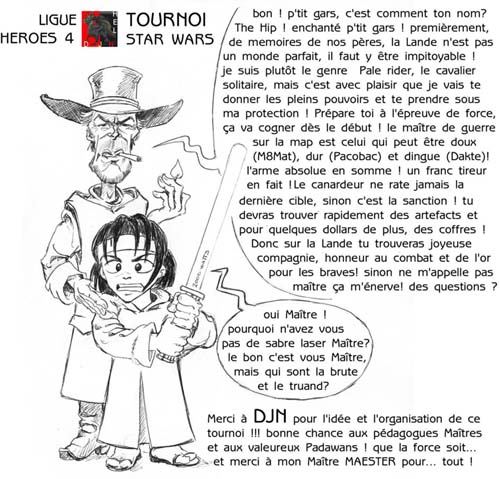 Dans une galaxie très lointaine, sur la planète héroïque, le sombre DJN avait l'ambition secrète de régner sans partage avec son fidèle padawan Mdt.