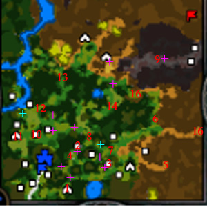 - Les croix violettes sont les emplacements des éclaireurs Inferno.