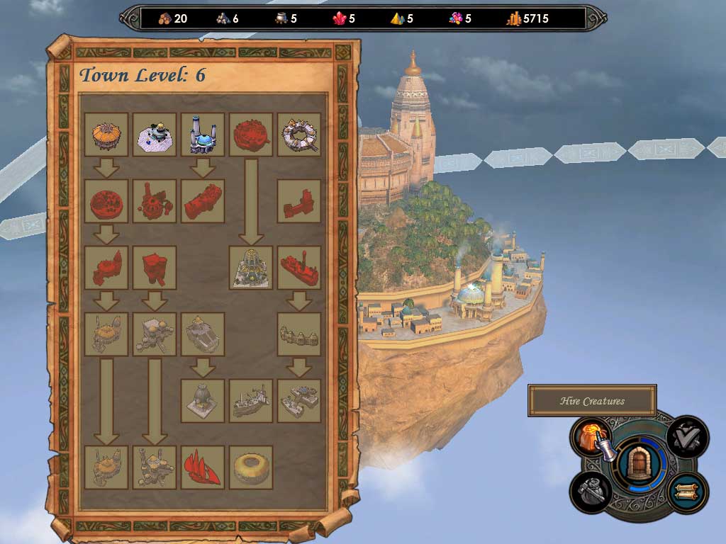 Mais ce qui marque le plus c'est l'ambiance graphique de chaque race. Il faut savoir que dans H5 le background est très important et maintenant chaque château est associé à une race dominante. Ainsi on retrouvera les humains pour le Haven, les démons pour l'Inferno, les morts vivants pour la Nécropolis. Mais maintenant les elfes noirs font leur apparition pour le Dungeon, les elfes se voient attribué le Sylvan, et l'Academy rassemble tout ce qui est magique. De même chaque race a maintenant un style graphique qui lui est propre. Ainsi l'Academy change complètement pour un design oriental, alors que le Haven s'oriente vers le médiéval, et le Dungeon vers le gothique et ainsi de suite.